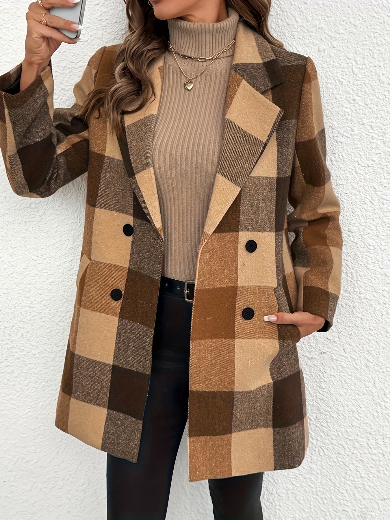 The Charlotte Coat brings classic check patterns back in style,  blending vintage elegance with a confident, city-ready look. With its tailored double-breasted design and flattering midi length, it adds structure, warmth, and sophistication to any outfit.